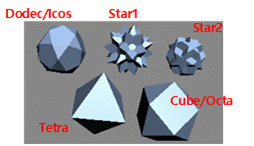 ① Family : 히드라의 종류로 수치의 변화에 따른 기본 형태의 모양에 따라 정사면체(Tetra), 정육면/팔면체(Cube/Octa), 정십이면/이십면체(Dodec/Icos)와 두 개의 별모양(star1,2)이 있다.